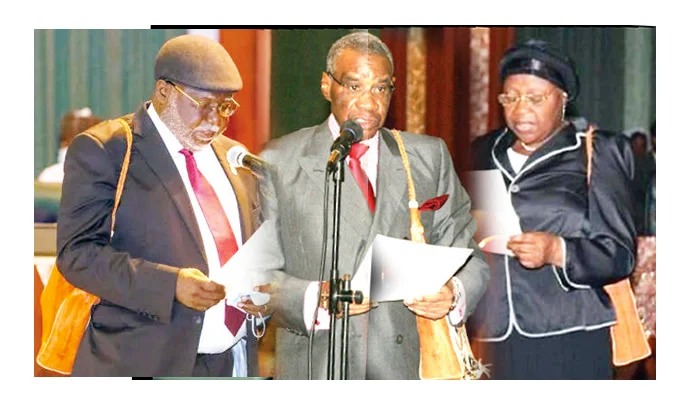 After the swearing-in of Justice Olukayode Ariwoola as the acting Chief Justice of Nigeria on June 27, 2022, pictures of the past CJNs during their swearing-in resurfaced on social media. The pictures showed the senior Justices of the Supreme Court with leather-like tan bags hung on their right shoulders as they took the oath of office.