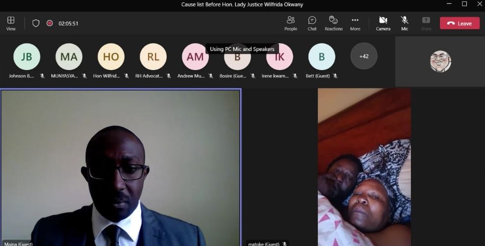 Kenyan lawyer @Kamaumathingira who shared the photo wrote “Sometimes clients will embarrass you,Imagine your client logging in to court with his wife for divorce hearing”.