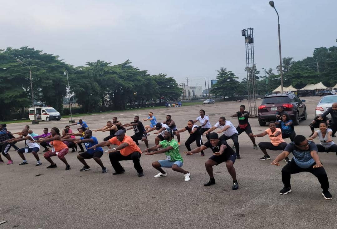 The Learned Silk was spotted with his team, as he came out in the early hours of the morning to participate actively in a workout session, which is part of the programme of the events for the conference.