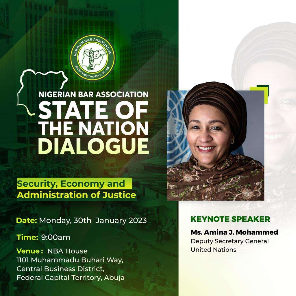 Amina Mohammed, Deputy Secretary General, United Nations is set to deliver the keynote address at the event on Monday 30th January, 2023 at the Auditorium of the NBA, National Secretariat, Abuja.