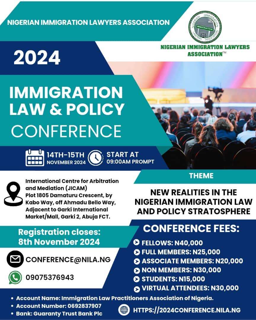 Rehoboth Blooms Enterprises has announced its role as a sponsor for the upcoming Nigerian Immigration Lawyers Association (NILA) Immigration Law and Policy Conference, scheduled for November 14-15, 2024. This event will bring together experts and stakeholders to discuss critical issues and innovations in immigration law.