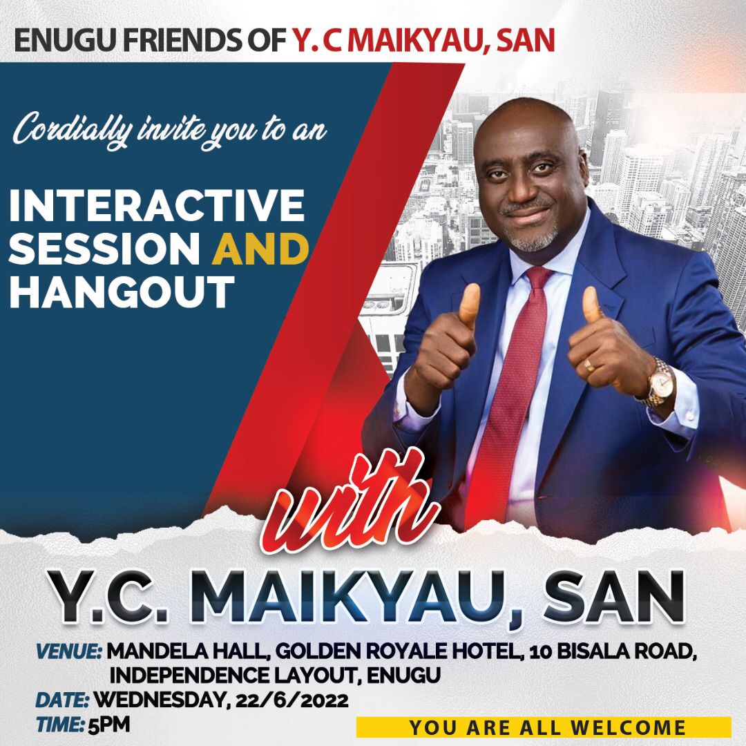 Tochukwu Maduka, SAN Announces NBA Enugu, Nsukka, Oji River, Ezeagu And Obolloafor Branches’ Interactive Session And Hang Out With Y. C Maikyau, SAN