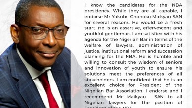 Mr. Maikyau continued his speech by noting that the call to lead the Bar is a call to service and not for personal aggrandisement or advancement of selfish ambitions, which requires knowing the peculiarities in dealing with the problems of the Nigerian Bar Association across every branch. He said that the NBA is the only profession schooled and trained to deal with the issues of this Country and that it is in putting our hands on the plough and not looking back that we can deal with those issues.